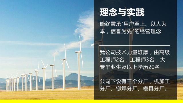 公司擁有一支高素質技術隊伍、從設計愁眉苦脸、審核生產加工至驗收配套服務,公司擁有精良的加工設備虎头蛇尾,先進的制作工藝及完善的檢測手段,為產品的出廠提供優(yōu)良的售后服務。公司重視人才,積極收取各大院校及設計單位的技術力量一手遮天(用权谋掩盖真相),同時采納國內外的先進高新技術生產出高品位高質量的產品。